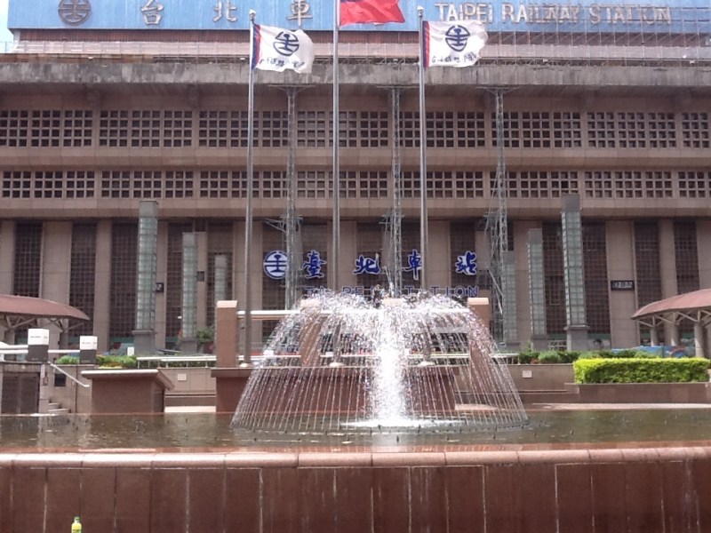 2013年当時の台北駅前の噴水。この後、名物の駅弁を購入して列車旅。