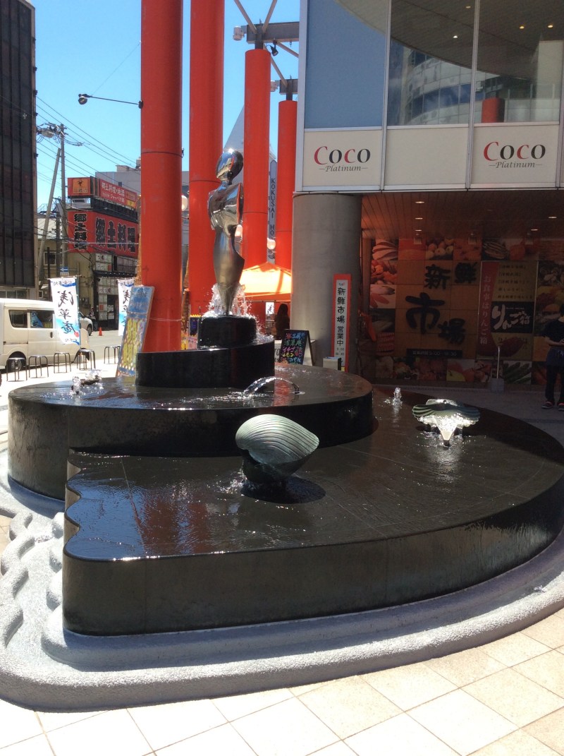 青森駅からほど近いアウガ新鮮市場にユニークな噴水がありました。何か海を感じませんか?