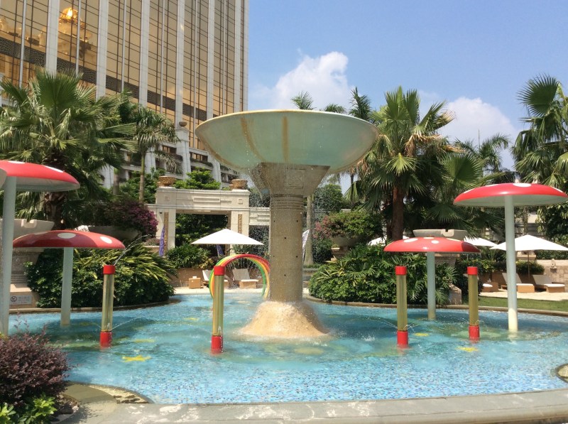 マカオのギャラクシーマカオホテルに泊まった時、子どもたちが一番喜んでいたのが、プールにあった噴水です。噴水っていいですね!