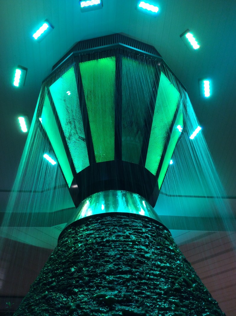 徳島駅前を歩いていたら、建物の中に綺麗な噴水が見えました。