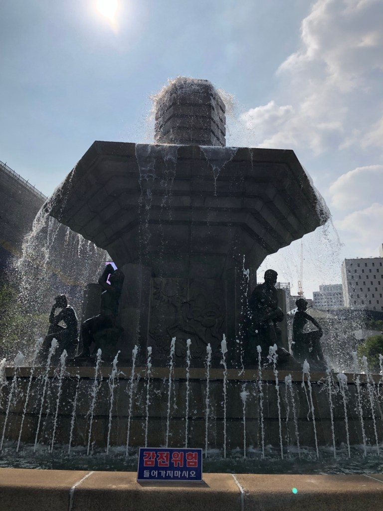韓国🇰🇷ソウル 韓国銀行貨幣金融博物館前の噴水(新世紀水池)